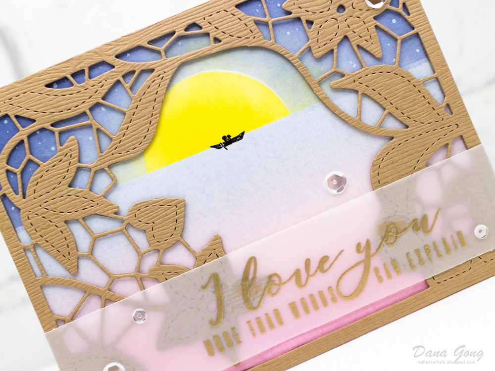 Lastly, I gold heat embossed sentiment from Altenew Speech Bubbles Stamp Set onto vellum and adhered it using clear foam tape as shown in the picture.